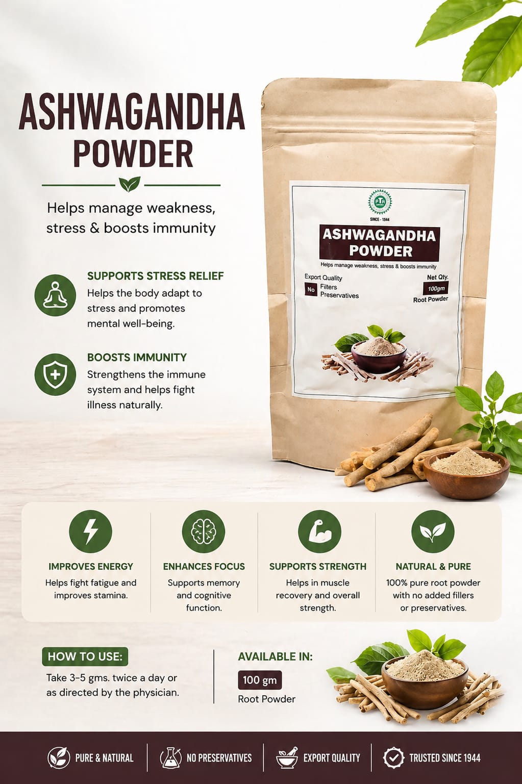 - Ashwagandha Powder is a powerful natural remedy that helps enhance both physical and mental well-being when used regularly